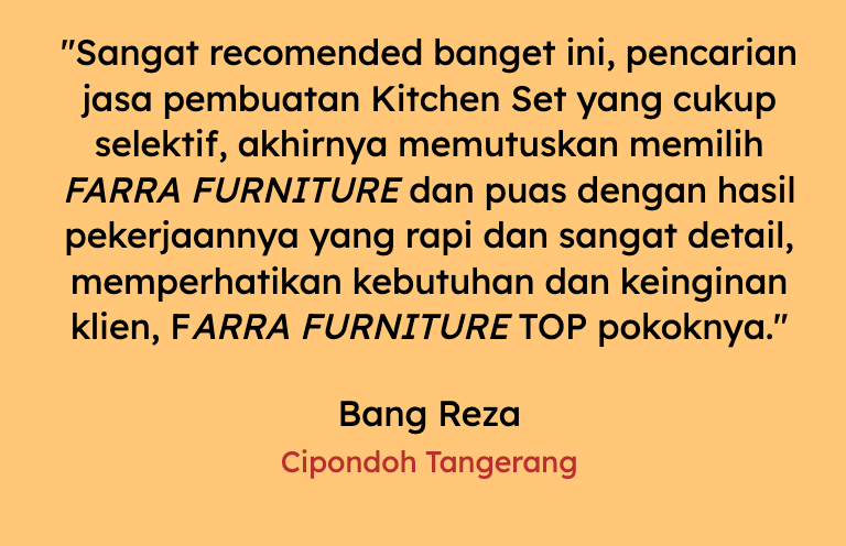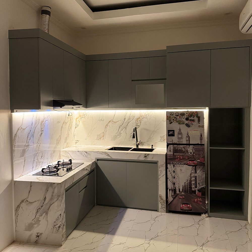 Menyediakan kitchen set custom, tahan lama, dengan desain modern dan fungsional untuk dapur bersih dan rapi.