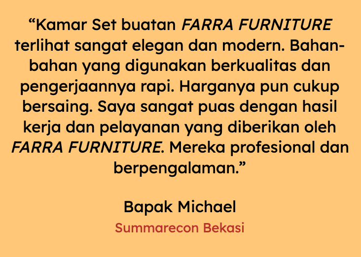 Kami adalah penyedia furniture yang berdedikasi untuk menghadirkan kenyamanan dan keindahan di setiap ruang Anda. Dengan pengalaman dan komitmen pada kualitas, kami menghadirkan berbagai pilihan furniture mulai dari sofa, meja, kursi, lemari, hingga kitchen set yang dirancang untuk memenuhi kebutuhan hunian maupun ruang kerja modern.